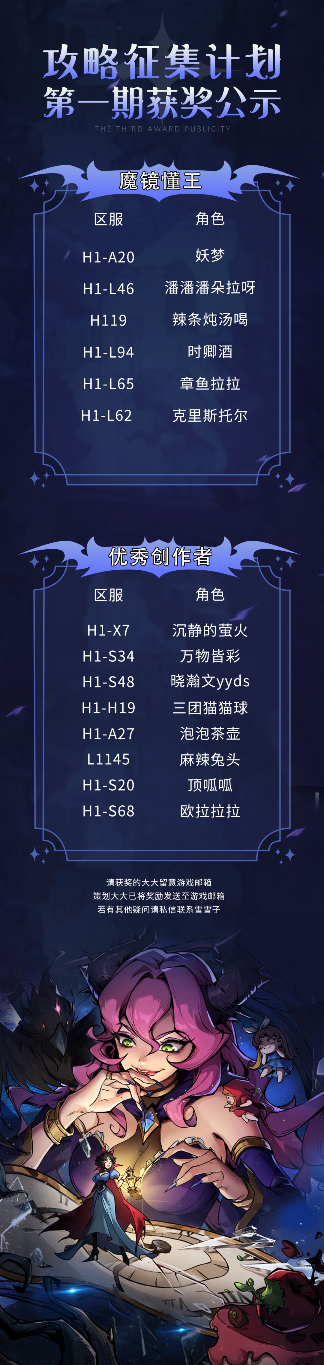 恭喜以下大大获得本次攻略征集计划的奖励,同时也感谢各位大大们的攻略创作