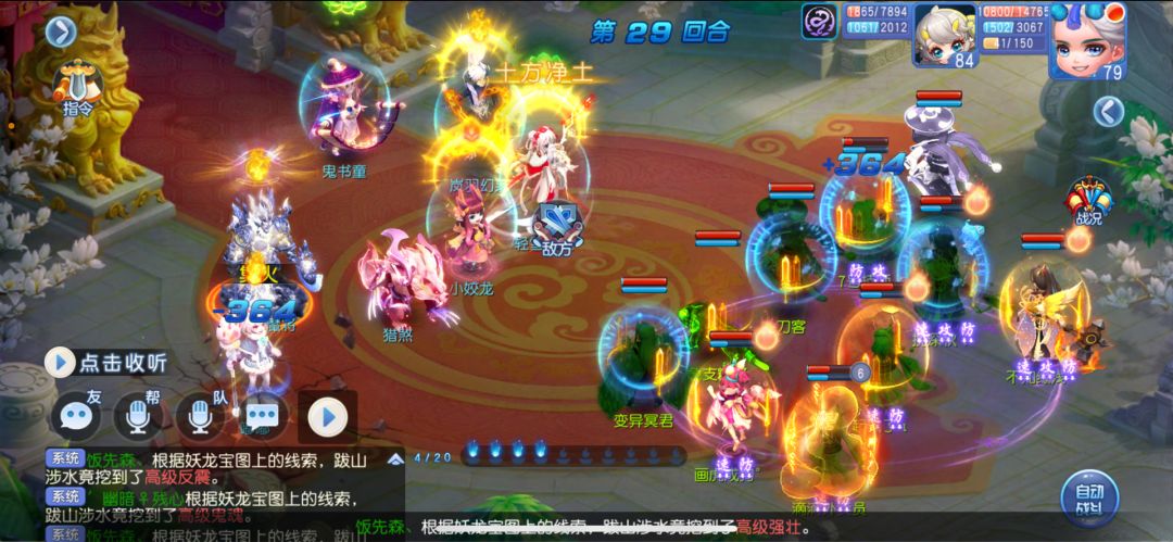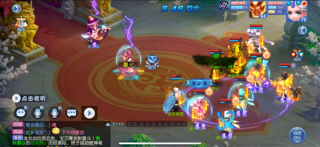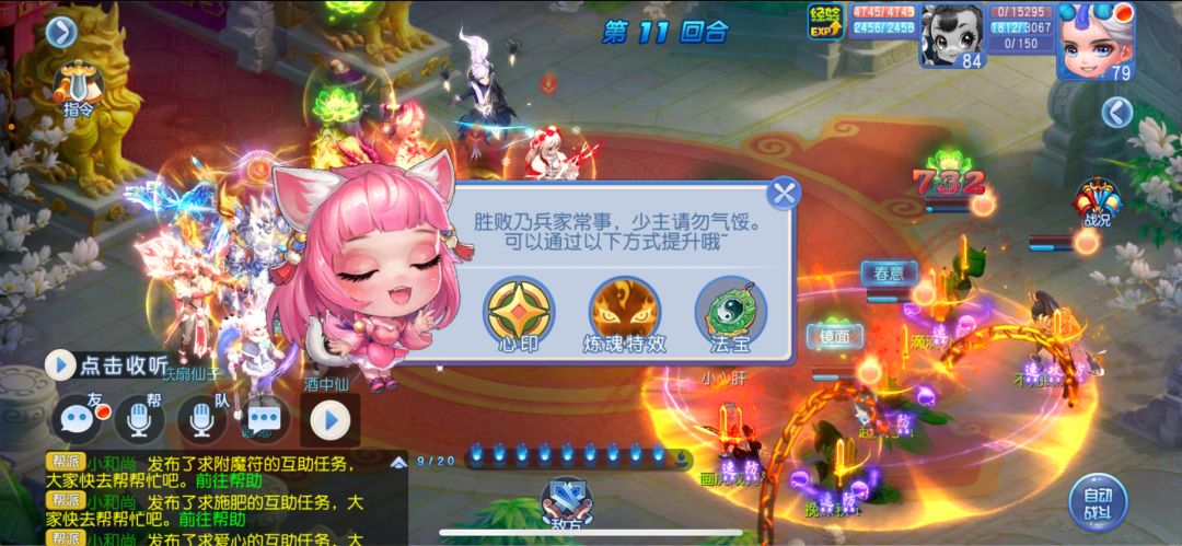 进入战斗,三个辅助职业同时喝酒,保证第二回合一个单位恢复,两个单位开盾,输出则是全力集火BOSS!剩余一个单位在第四回合补灵盾,甲盾断一回合无伤大雅,但是灵盾断了就很伤,所以一定不要断!封印不开盾的情况下可以趁机把铁扇或者酒中仙封上!至于对面鬼书童会封,我们不要管他,本身特技,法宝,不怕他一个封印单位!
