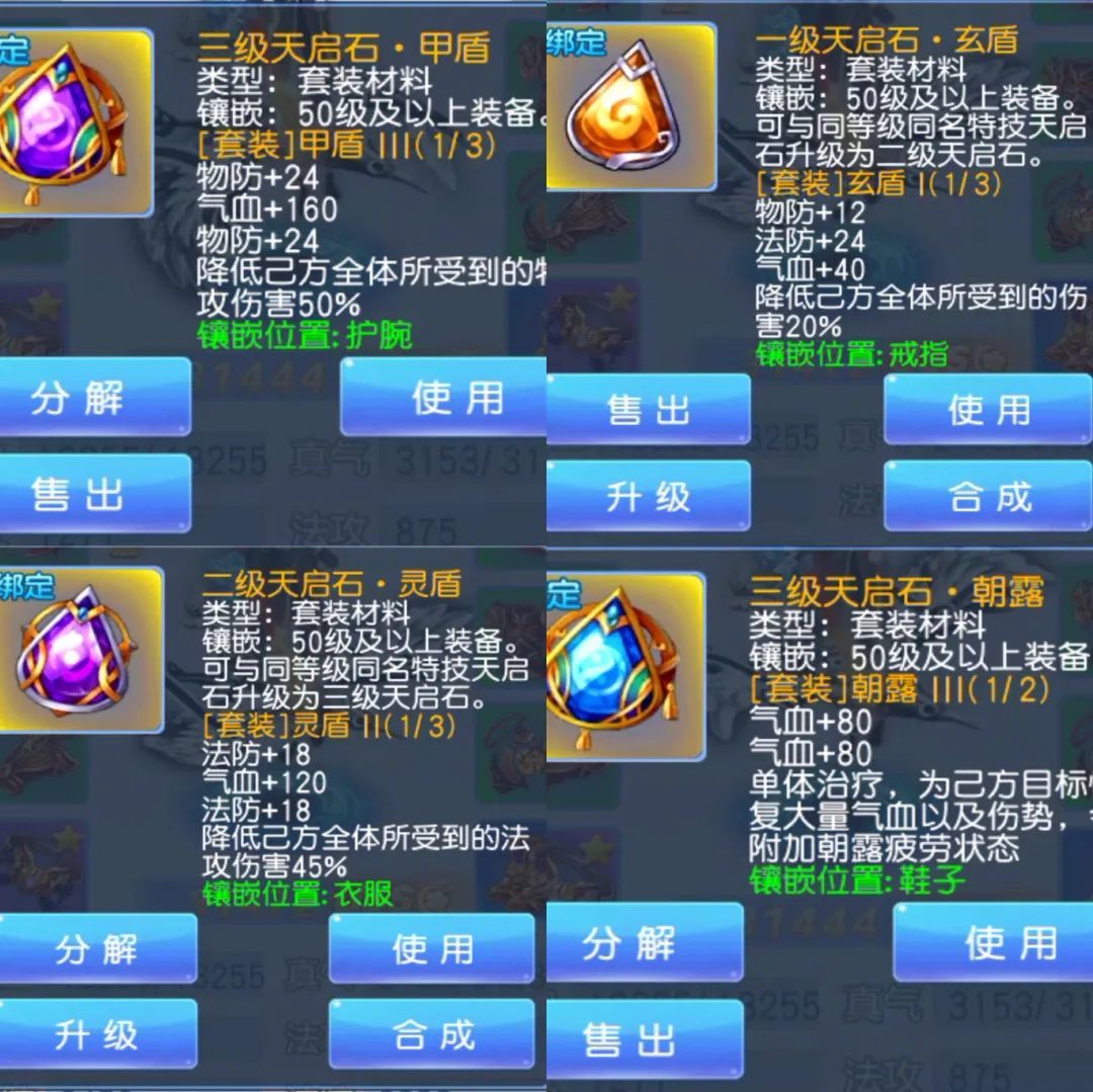 输出职业不用考虑太多,妖杀、星澜,辅助则是灵盾、甲盾,尽可能保证至少两个辅助单位拥有灵甲双盾,剩下一个视情况补充!有条件带上玄盾,没条件带上朝露,防止突然倒地!