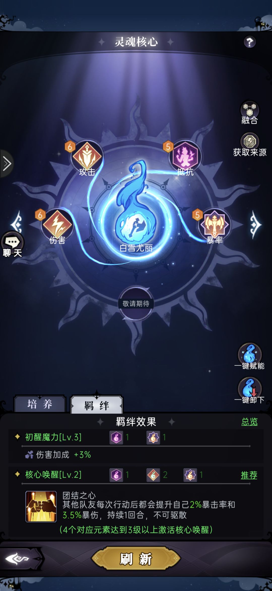 为什么说半毕业,因为核心界面可以看到还有一个槽位没有开放,个人预计是预留后续版本更新用的,第五个槽位一开,就可以上2个魔力+2个梦境了。