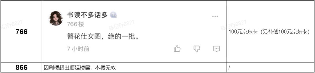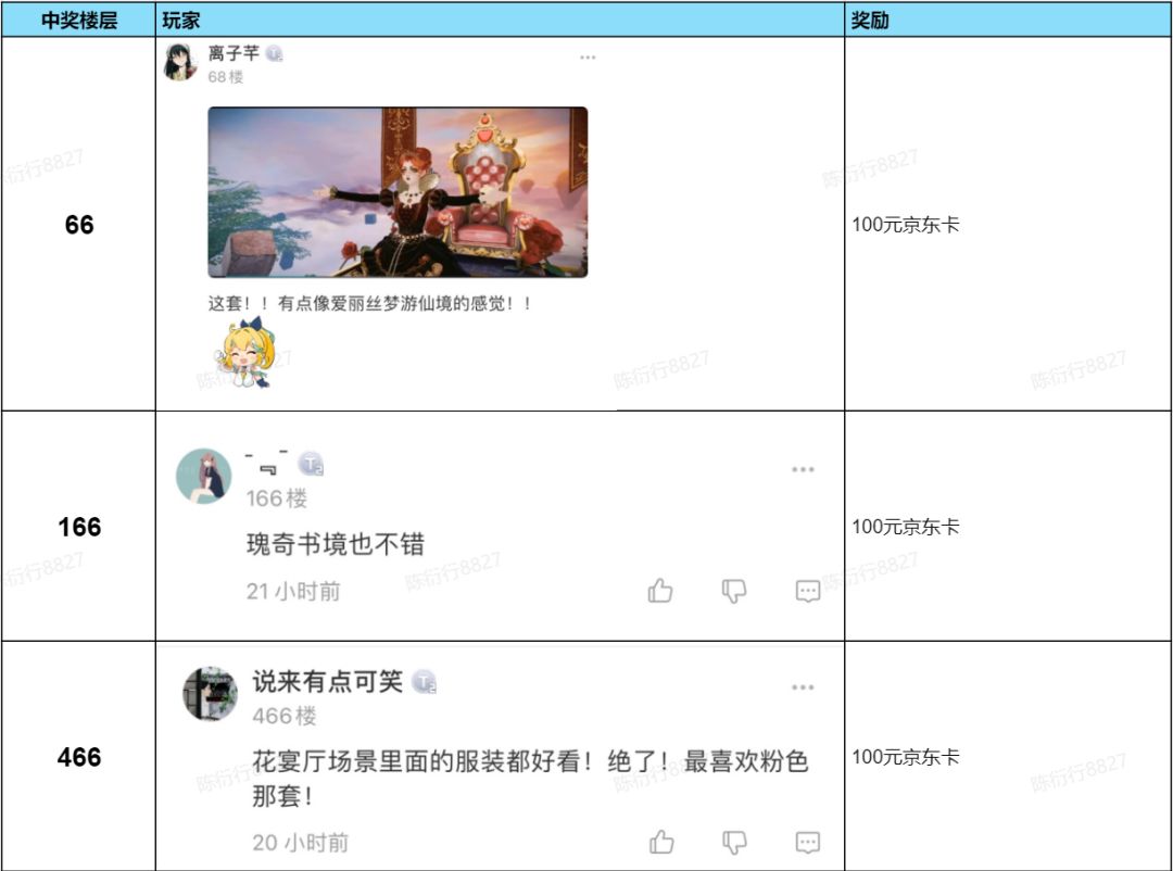100元的京东卡获奖楼层: