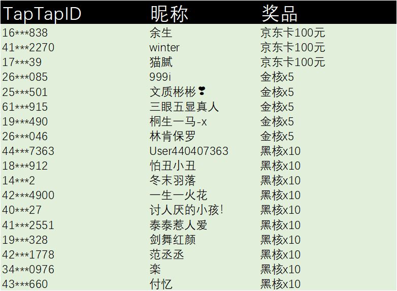 感谢拓荒者的参与,请获得京东卡奖励的拓荒者,在收到获奖信息后尽快填写收货信息点击填写收货信息 ,京东卡收集信息,信息收集将在7月15日23点55分截止,超过未填奖品会被吸走嗒!活动礼包码的拓荒者请注意查收站内信,在2022年12月31日前进入游戏完成兑换哦。