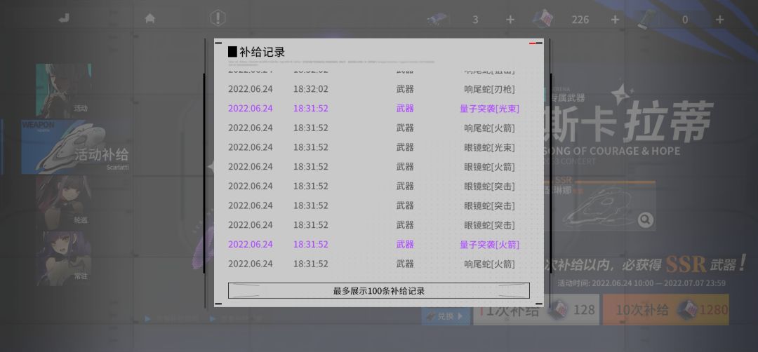 角色保底我认了,武器池连歪4次我真服了,你这池子里面真的有专武????我存了2w2量子结晶什么鬼都没感受到,讲真的我有点蹦不住了,上次抽个妮娅s给我连续歪两个其他的,求求你保底必出吧,每次240抽换专武我玩不起😅😅😅😅
