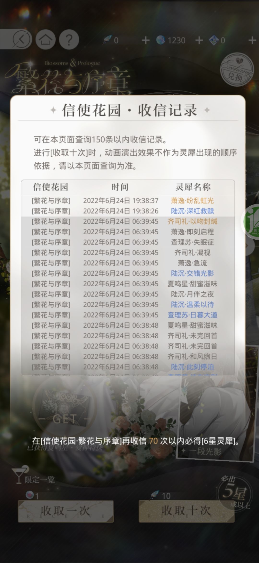 今天一下出了三张六星,有点懵嗯。。汤圆的是一百抽随机的,刚刚想了想单抽了两发又出了。。