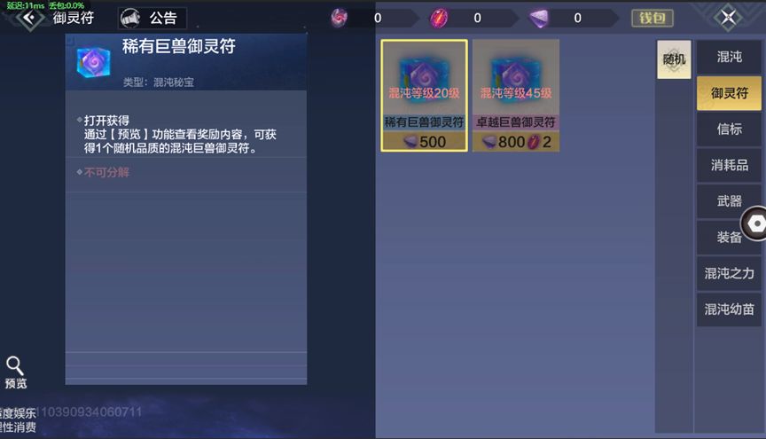 混沌御灵符获取方式:混沌内的拟换魔脑购买,魔方,天魔灵视,世界之理,御灵符等等开启获得。