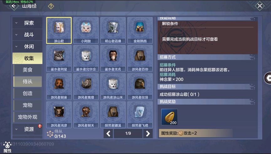 首先根据山海经内侍从篇上的招募条件和招募消耗来了解该侍从如何招募,在积攒够足够物品是找到该侍从后招募解锁该山海经图鉴。