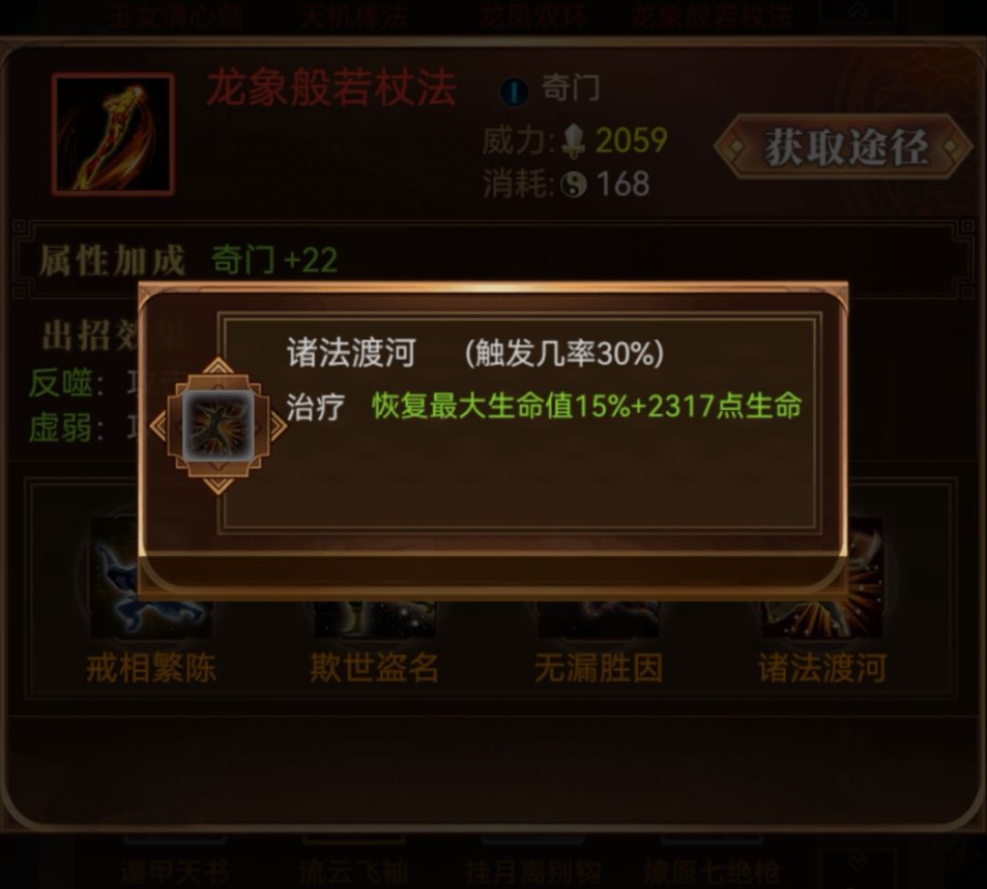 就拿杂学来说,比如带了本长生诀,他是单纯的加血,但是这样的话,会让我们的输出变低,所以我带了两个招式里面带加血的武学(金刚伏魔鞭和龙象般若功杖),这样增加了输出,同时生存也不至于太堪忧!