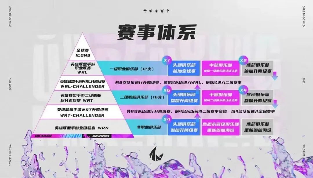 英雄联盟手游从去年10月上线以来,迅速建立完整的赛事体系,2022年伊始,面对全国大众玩家的WRN英雄联盟手游全国联赛、服务职业赛事体系的WRT英雄联盟手游二级职业积分巡回赛和WRL英雄联盟手游职业联赛,从大众到职业的三级赛事体系全面建成,并即将迎来第一次从大众到职业的升降级赛。