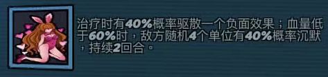 这个是魔力兔的技能,如果你被治疗,有一定概率清楚你一个异常,当然包括dot。当爱丽丝佩戴魔力兔之后,如果对战的是有dot伤害的队伍,那么就满足嘿嘿嘿的条件。只要你爱丽丝感染了dot就触发了“bug”的必要条件,在这之后的爱丽丝每一次挨打回血,都会进行魔力兔的概率判定。一旦触发了魔力兔的概率,你的爱丽丝就会直接满血。