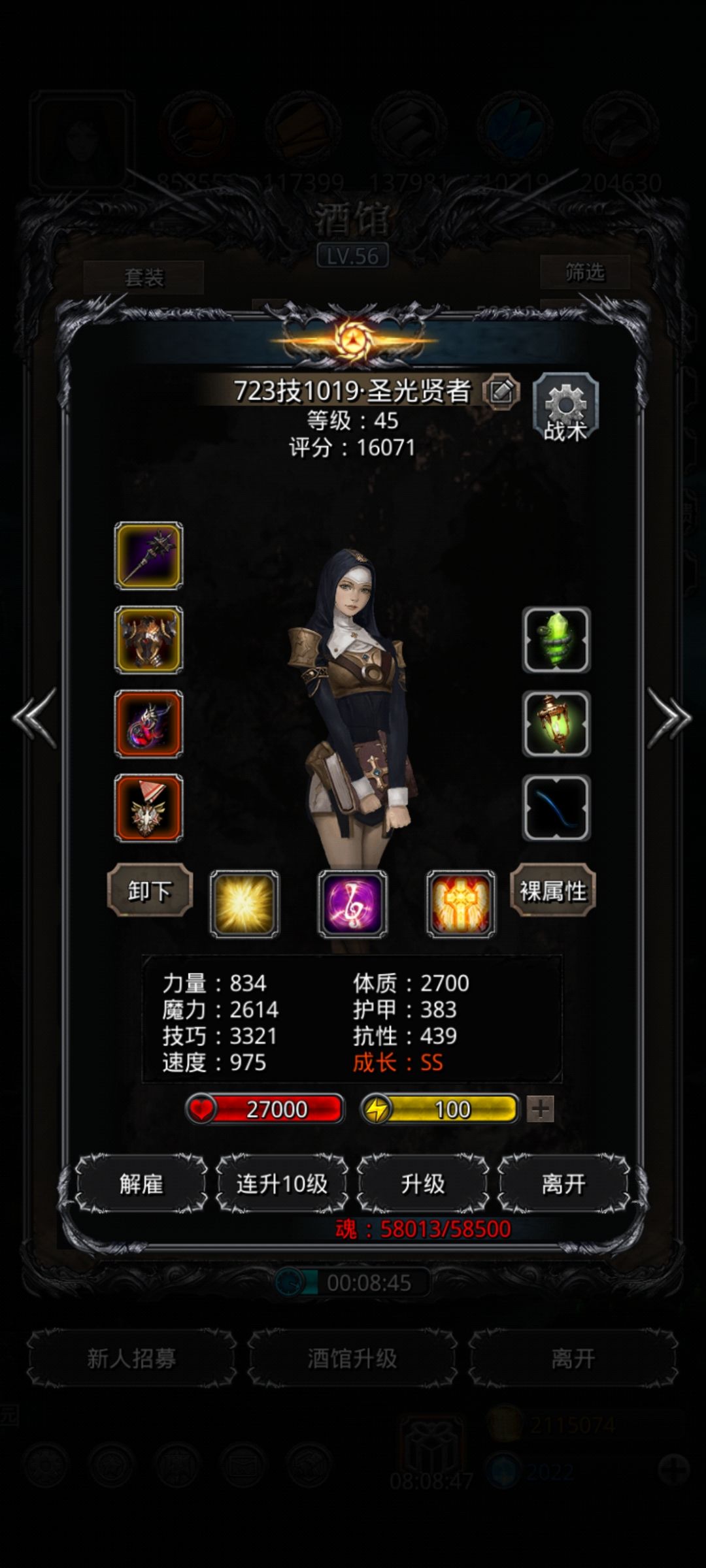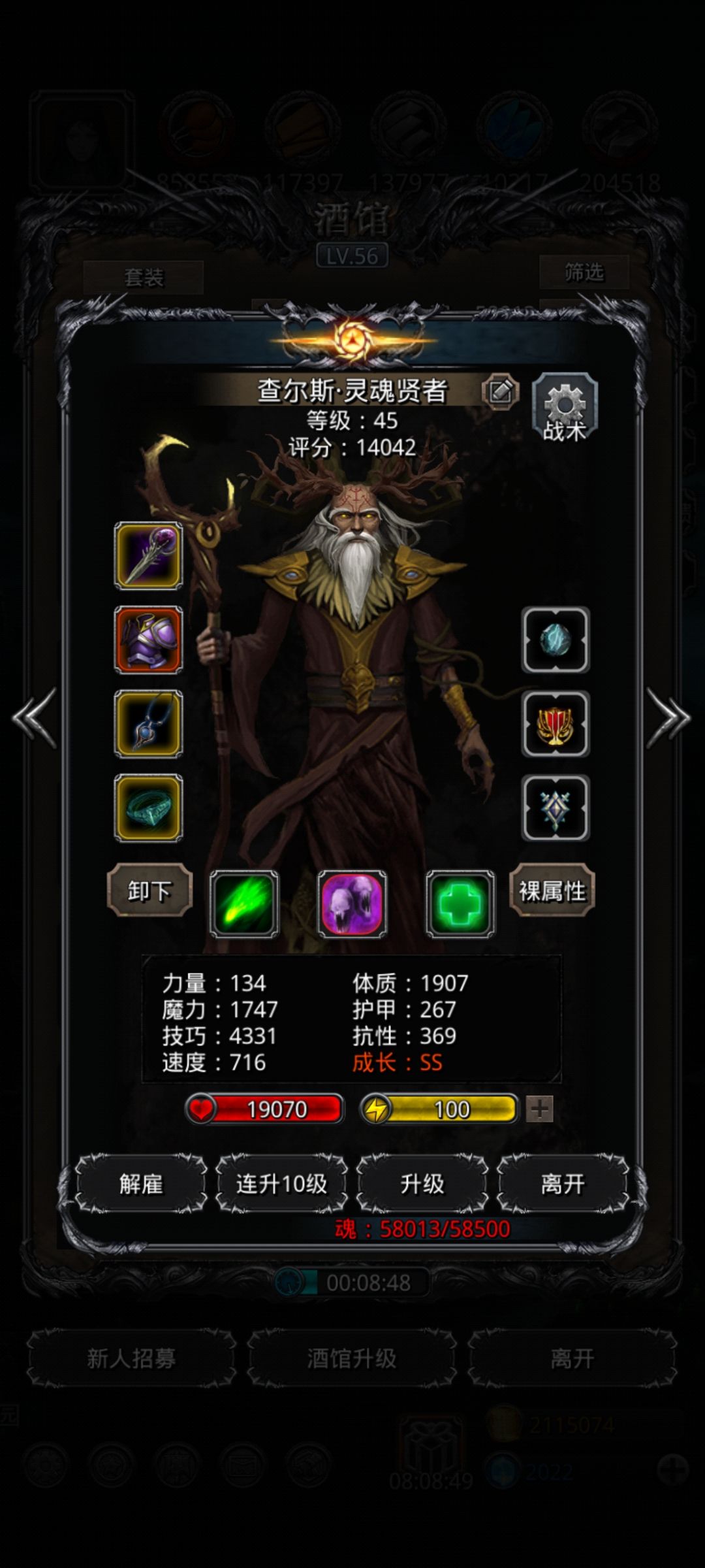 只需要状态100%,复仇70,别的都不要,十分钟解决满血boss😄(状态不到100也不要紧,多献祭几个,凑状态和复仇一共170即可。)