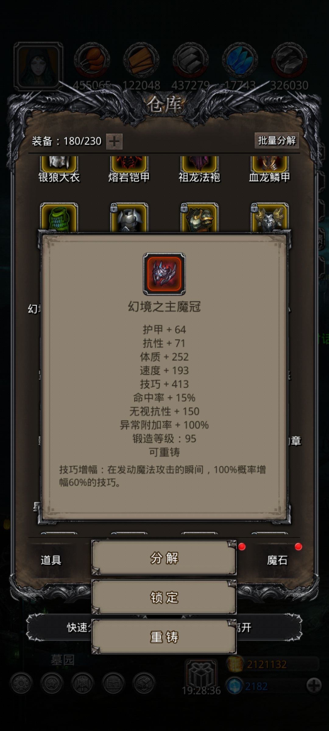 经过计算,复仇110力魔全减为零,无伤过。😄