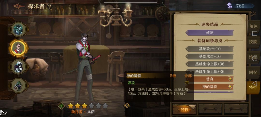 我给尤萨买了个神的降临的武器,此时一切正常,然后我怕尤萨猝死又买了个替身,结果发现升级时倒扣生命上限了,两个装备全部换下来生命上限也只有77