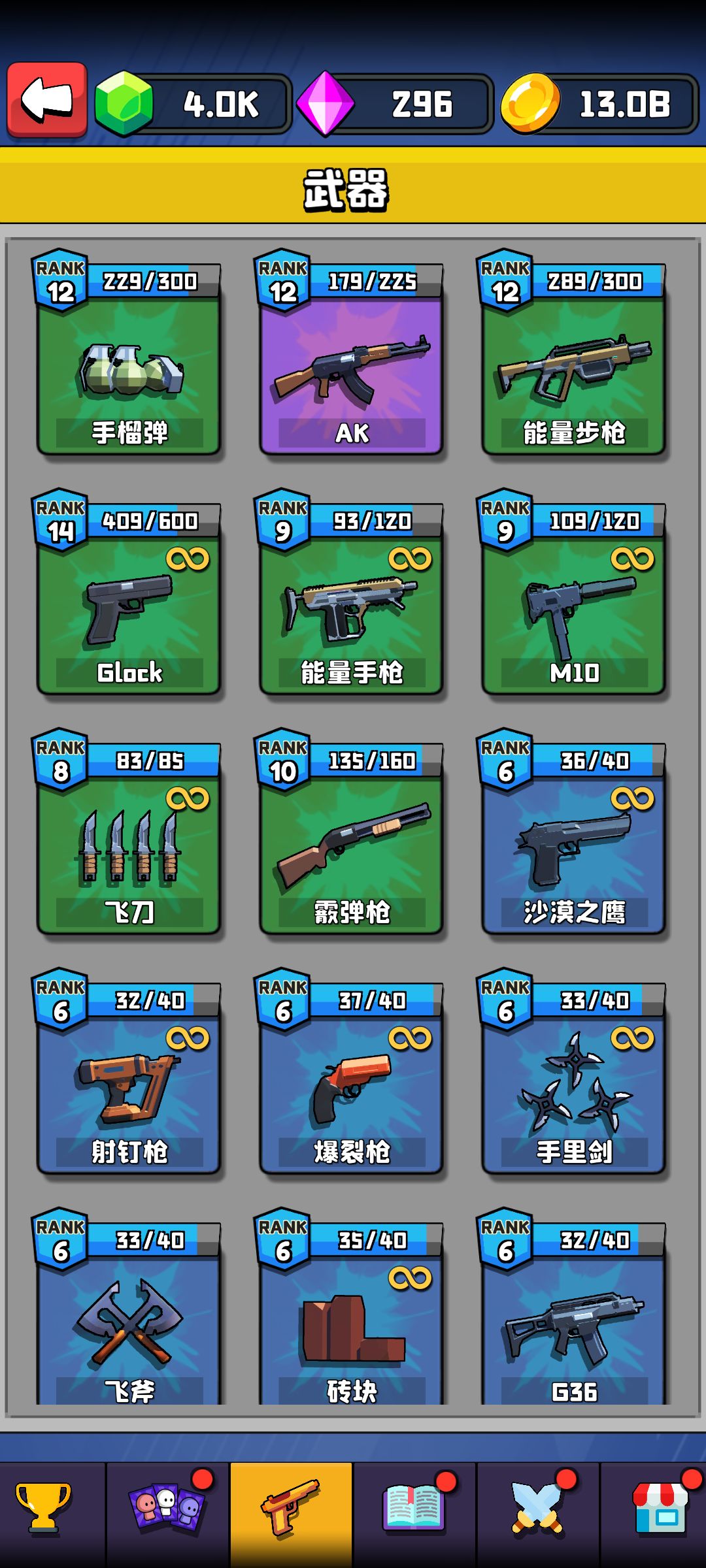 我个人推荐的是优先刷技能书,因为技能书在这个思路下是比较重要且急需获得的材料,其次是罐头。因为我们的ak,手榴弹,能量步枪都是在所有罐头商店和绿钻商店里面可以见到的,所以我们选择这几把武器,罐头商店里面看到任何人物都可以无脑拿,因为罐头要达到尽量少刷新,最大化资源利用。至于金币本,想刷就刷,看心情。因为主挂机思路你会发现同期情况下金币本收益实在很低。