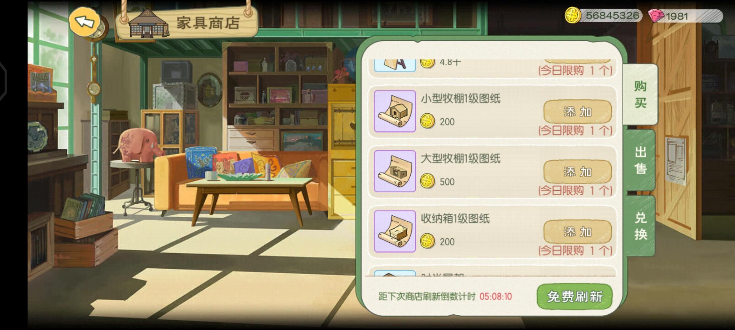 另:1级牧棚、收纳箱图纸也在源造这里金币购买,2~5级牧棚在自宅木工台解锁自制。