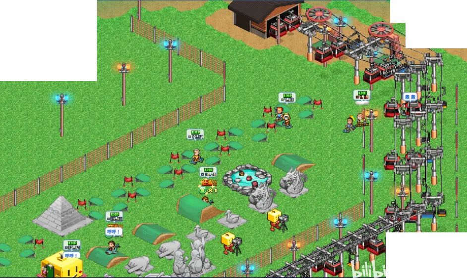 重要2. 缆车尽量把轨道造的尽量贴近,甚至可以重合,使游客滑的都是唯一路线。把路线及轨道两侧都拦住,里面就堆满各种冰雕和练习物。(包括开罗系列)经验倍率会很高,50~70+。