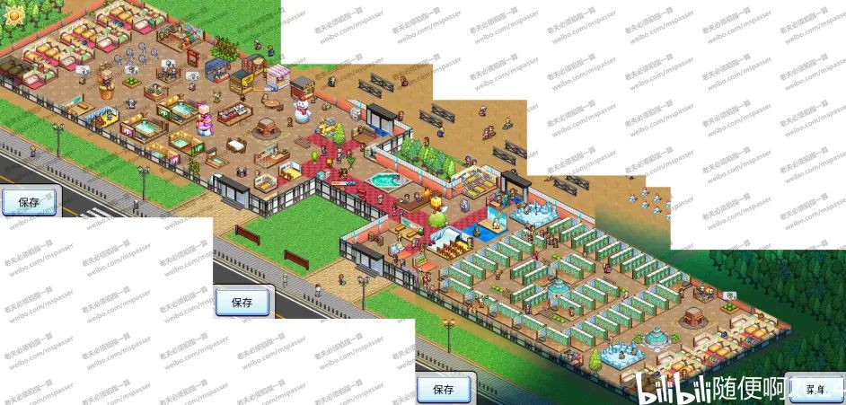 布局还是比较简单的,因为范围比较大,总能把29个相性都堆满。不过我布置的比较宽松,除了客房、更衣室,以及长椅和灌木,其它都只放了一个,把道路尽量空出来。因为这游戏动不动就道路不通,游客走路会卡住。