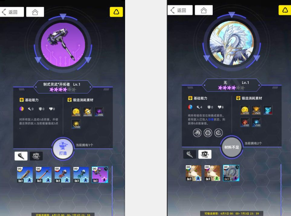 除了能够挂机产出资源以外,还拥有锻造功能,每周都有锻造系统独有的4星卡或武器轮换(打造的资源主要通过挂机产出)