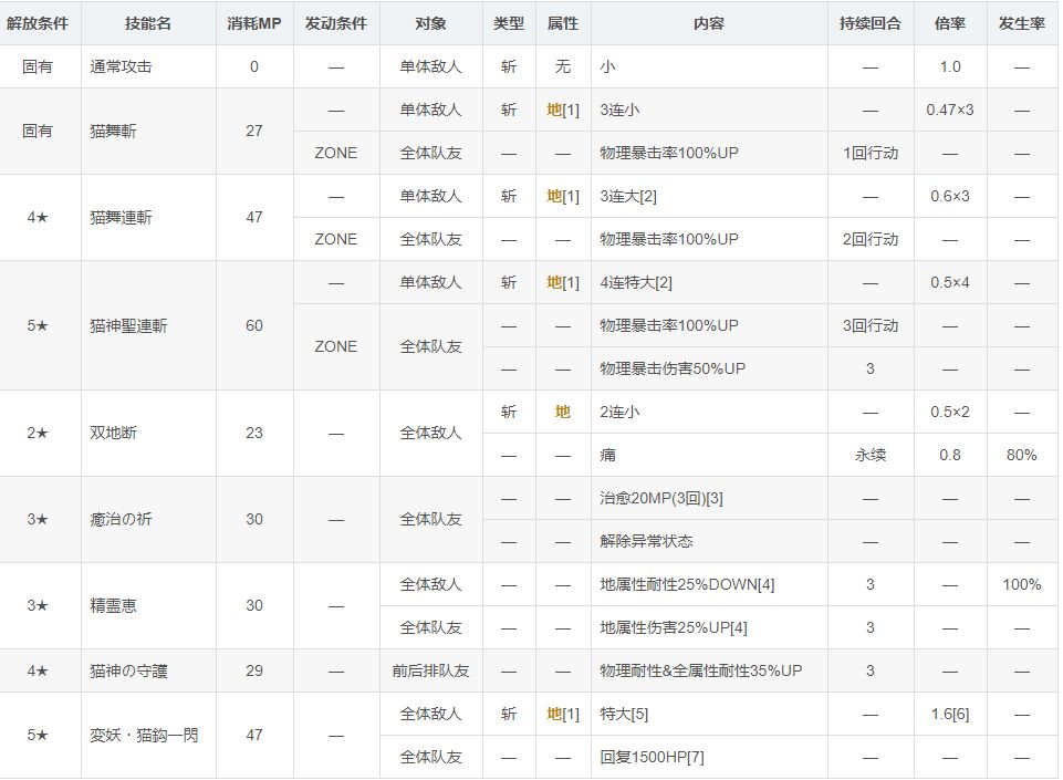 技能展示中可见,猫可可在属性阵的环境中:辅助能力极度优秀,可以提供: