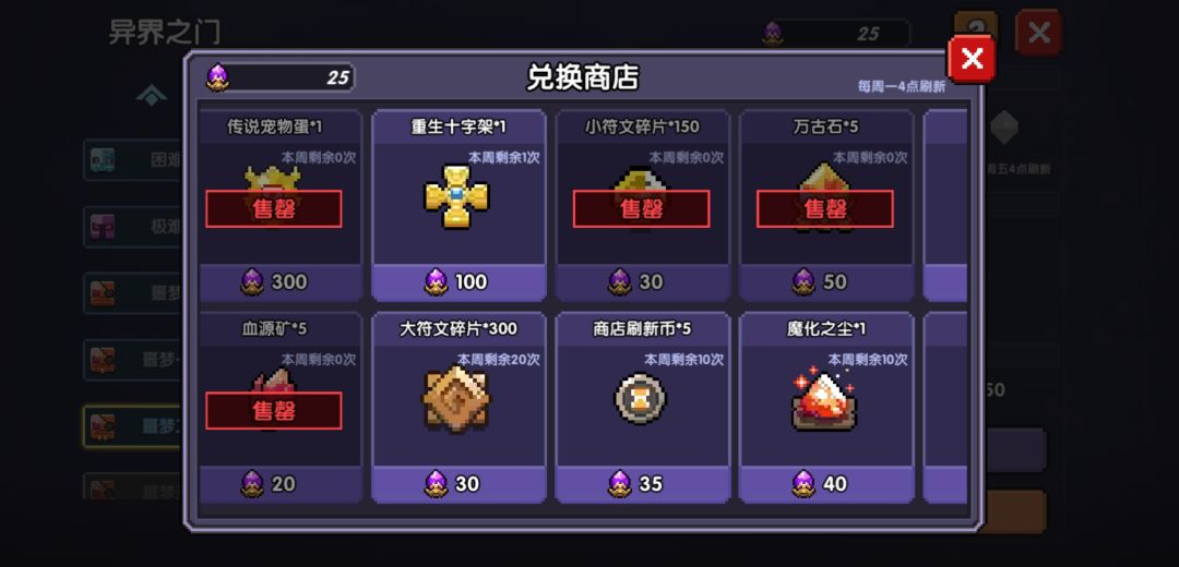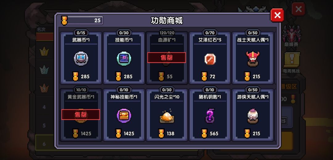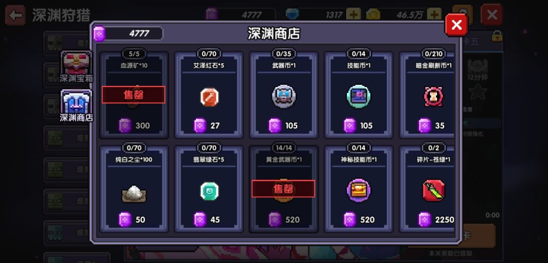 3.深渊商店:血矿—黄金武器币—翡翠绿石/神秘技能币