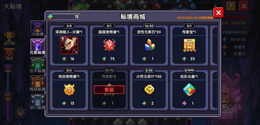 2.秘境商店:万古石/活性元素石—炎镰魂卡/小符文碎片