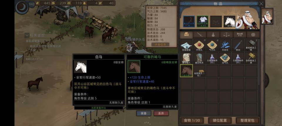 完成任务后,获得40移速的马和地图残页右,不换马就用50移速的。