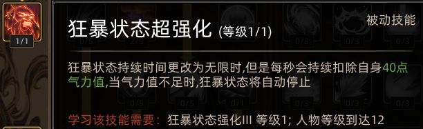 到了中期可以点出狂暴状态超强化,狂暴状态不限时间。