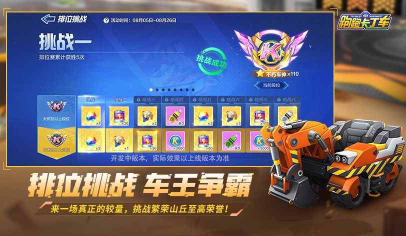 排位挑战赛将在每赛季末开启,车友们需要完成不同的挑战,赢取丰厚的奖励。挑战任务是完成后才会开启下一个挑战,车友们要把握时间,赢取全部奖励哦!