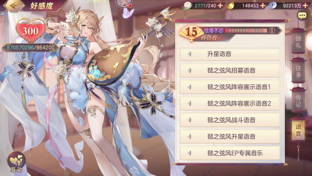 在本次二周年庆活动“契卫清河”中,孙鲁育帮助小将军过关斩将,用歌声和琵琶治愈阵容中受伤的武将,展现出音乐的力量。