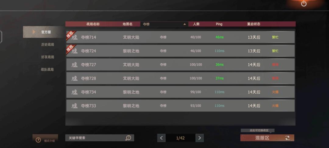 15天重启,自由PVP,消亡随机掉落,限时抄家每天19:00~22:00,重启微于重启倒计时为76小时后投放1个徽章空投获得,战局重启倒计时为71小时解除抄家限贸易区安全机制