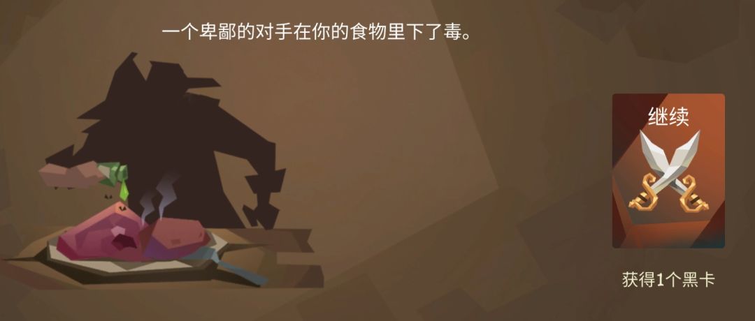 很恶心人的事件,除了醉酒流狂喜其他人都寄出了刀片。事件中第一回合获得一个混乱卡