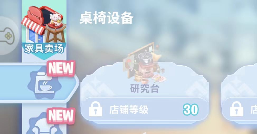 店铺等级达到30级可以解锁研究台功能,40级可以解锁研究台的科研养成系统。
