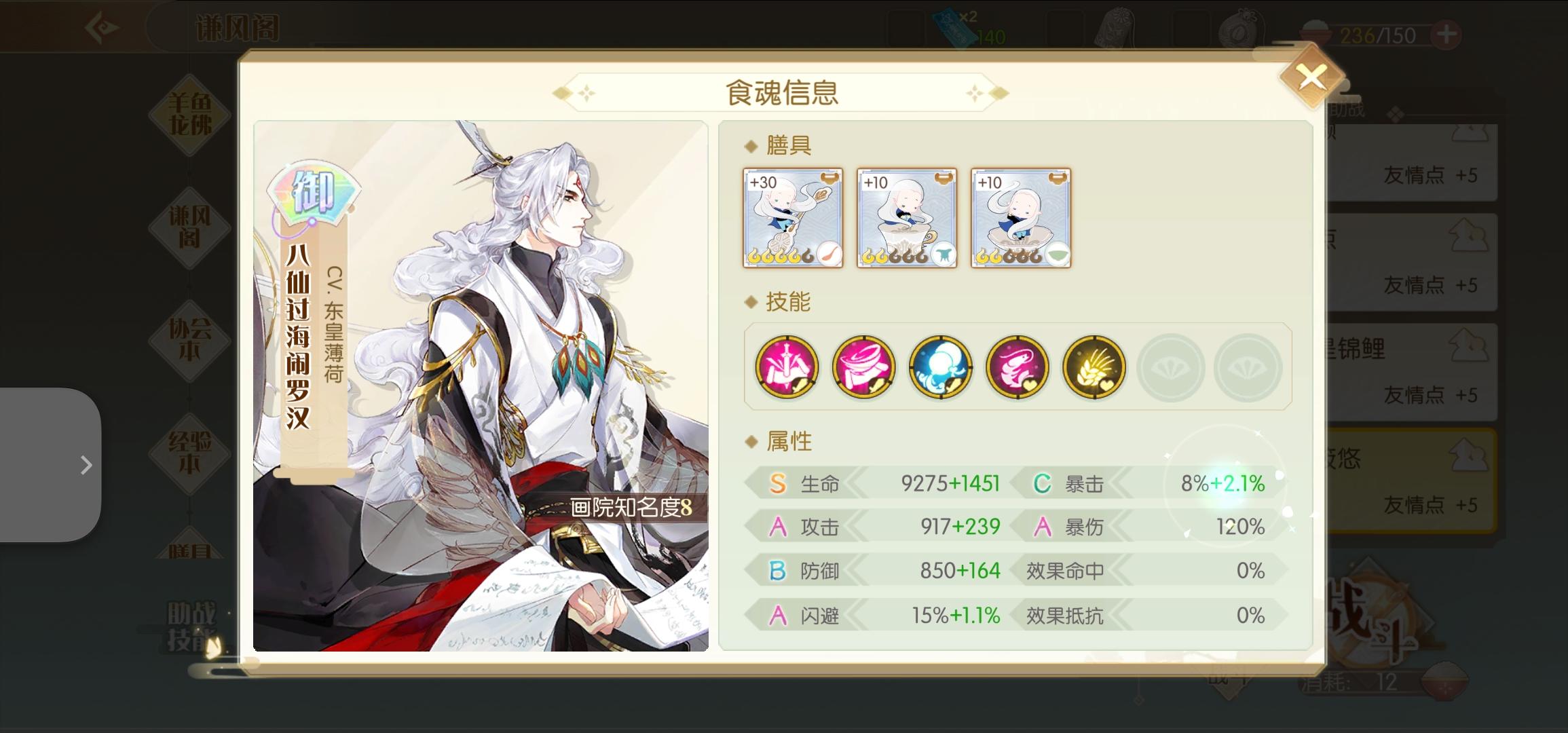 个人觉得,打谦风的时候血量得厚,食魂的暴击啊什么的得恰到好处,得靠运气才能过