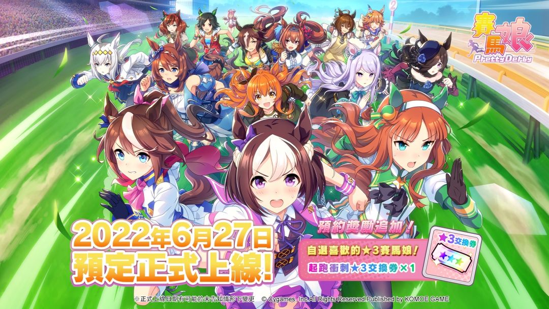 由日本Cygames 开发、小萌科技(KOMOE TECHNOLOGY LIMITED)代理的养成游戏《赛马娘Pretty Derby》繁体中文版,于今(27)日正式公布游戏将于6 月27 日上线。游戏同时于今早突破了60 万人次的预约目标,在原有预约奖励【宝石×2550】、【支援Pt×25000】、【金币×50000】、【闹钟×10】、【能量饮料30×10】、【女神像×10】以外,官方额外追加了奖励——「起跑冲刺★3 交换券×1」,将赠送给所有玩家。