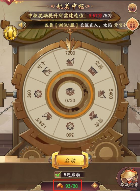 2. 有了中枢转盘铸币和零件第一桶金后,第一时间建设一个攻城连弩机关,这样可以解锁中枢机关的进攻/偷袭事件(秘诀:把送的体力和买的体力都第一时间用光再建设攻击机关解锁进攻/偷袭事件,这样可以得到铸币和零件以及宝箱的概率会更大)。