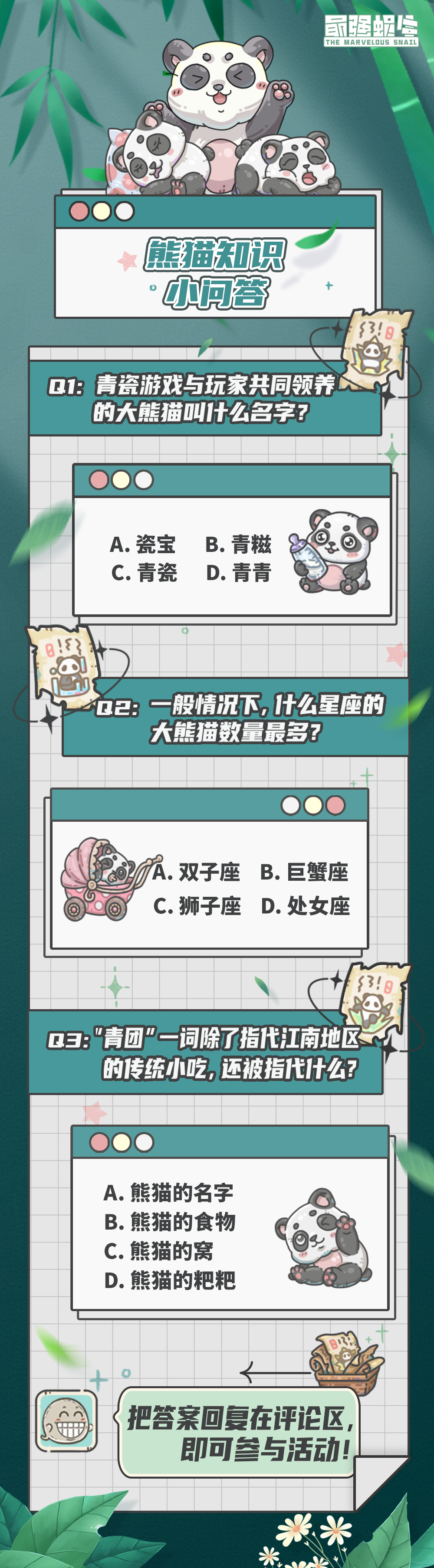 当当当当~“熊猫知识小问答”开始啦!各位蜗爷请看题!