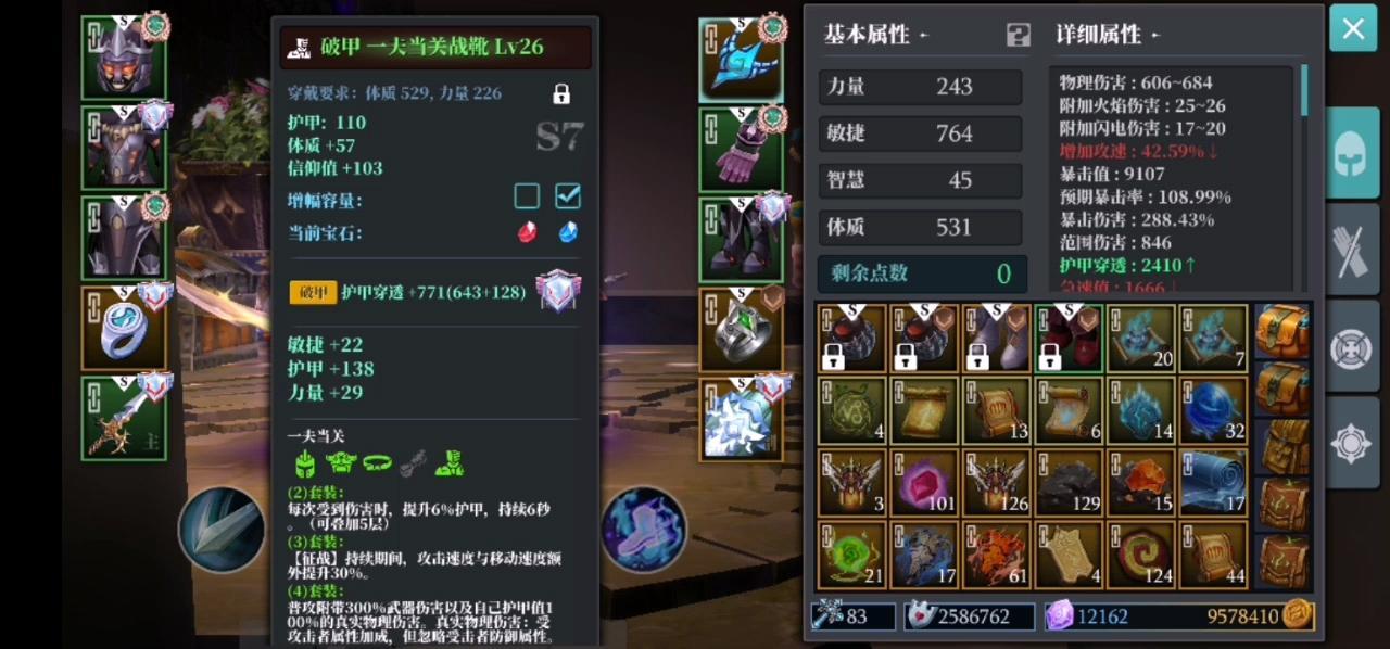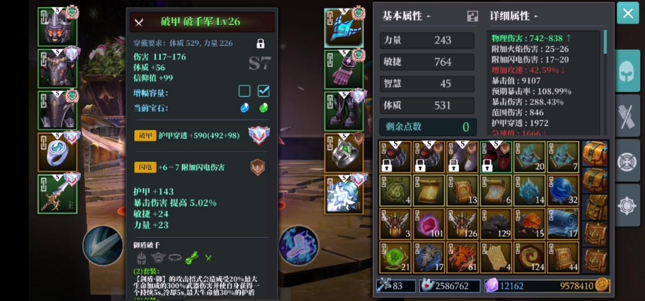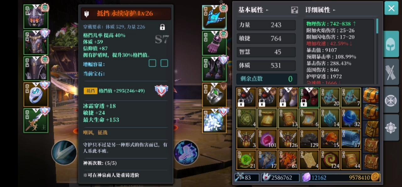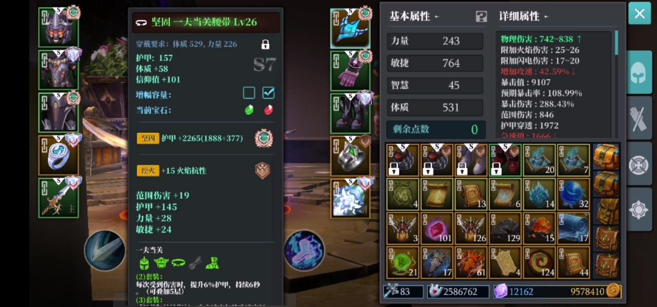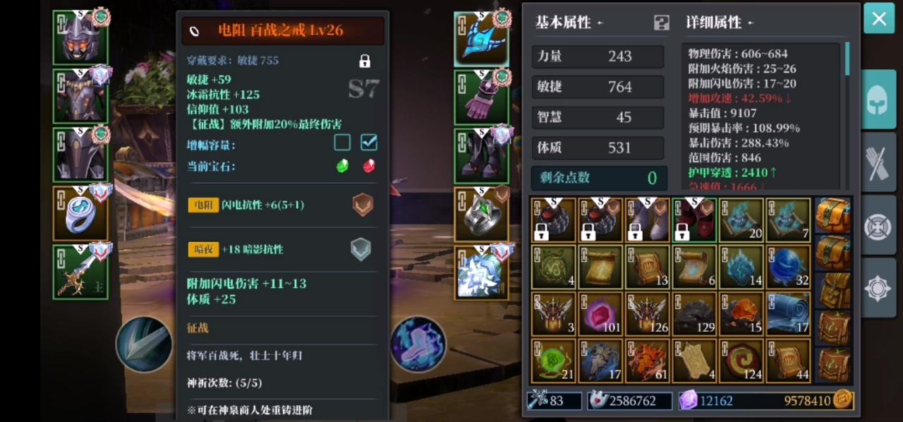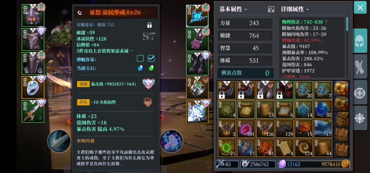 要的狗粮太多,精炼多。我也是刚够点,残暴输出高。斧头刷图舒服,不过用闪击就带不了幸运三件套