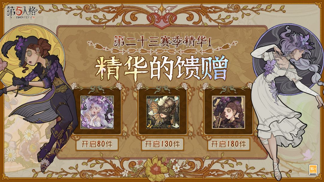 当第二十三赛季·精华1的抽取次数分别达到80/130/180次时,侦探们将会额外获得头像【渔女-迷迭香】/头像【昆虫学者-曼陀罗】/头像【空军-菖蒲】。