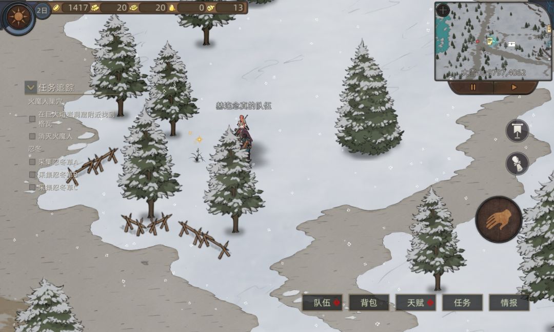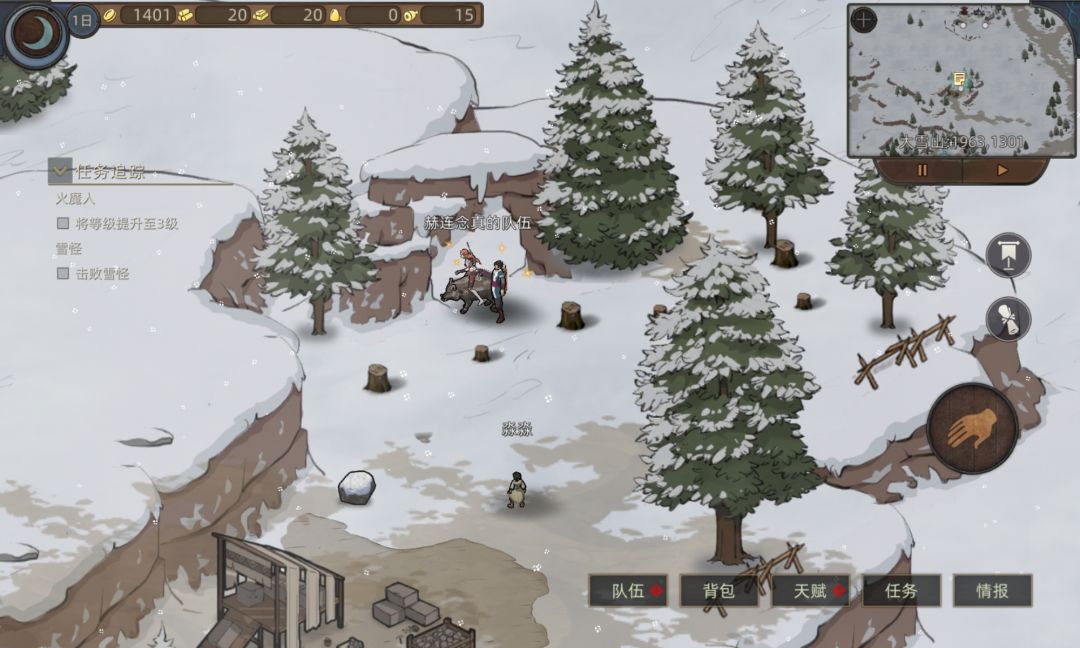首先我们来到大雪山的南岩村上面的地方接任务,之后点这个发光点