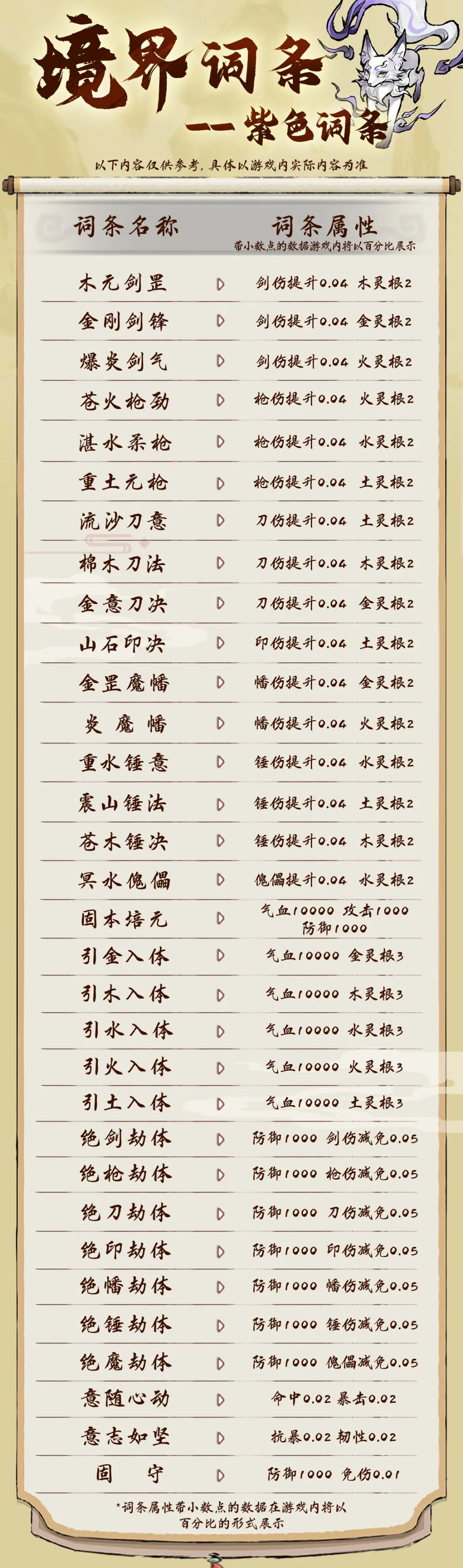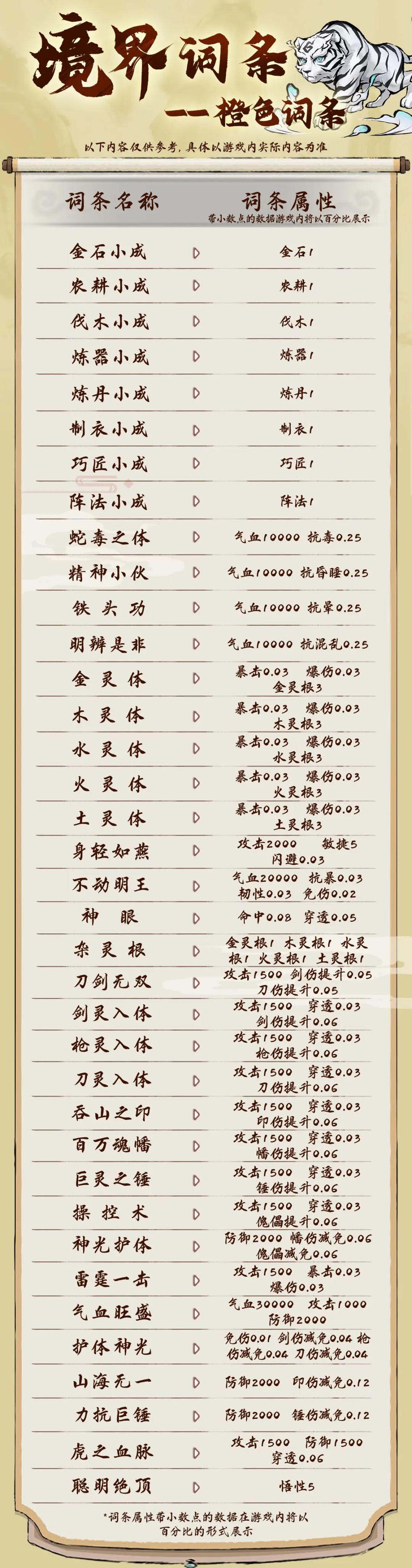 本篇中小师弟将把所有品质的境界词条都公布给大家,