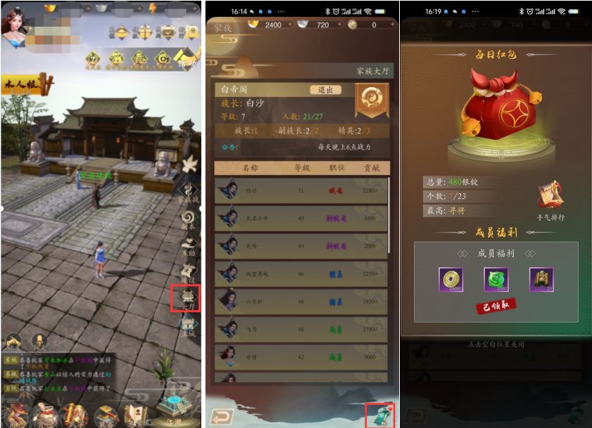 有了家族也不要忘记领取每天的福利哦,会有银锭哦。