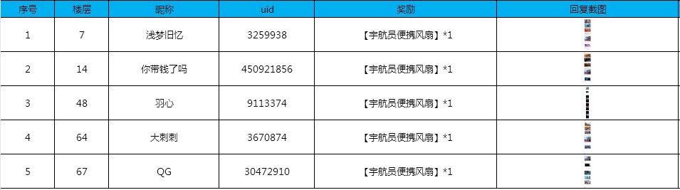 我们将抽出5位远航者各送出【宇航员便携风扇】*1