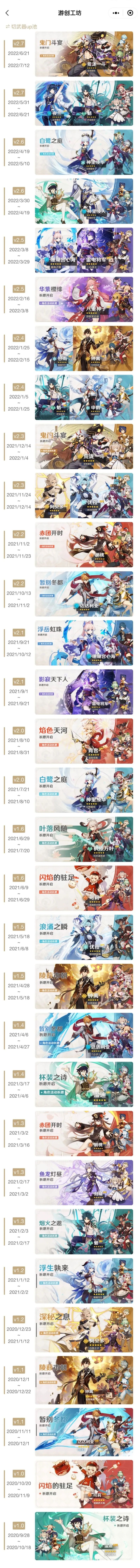 时间飞逝,2.7版本也快要结束了~原神复刻角色的原因有多种,最主要的两点就是以往UP池顺序以及剧情的推进,总之,往期角色UP总结再次更新了。