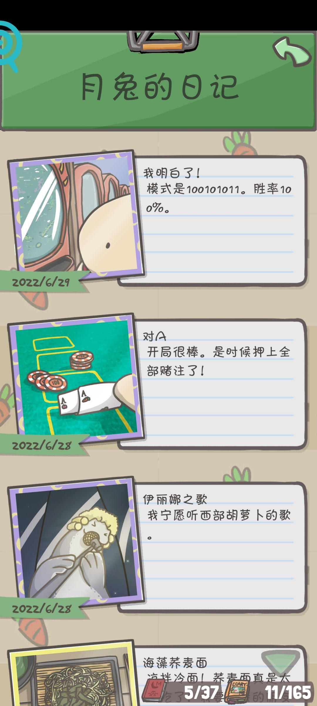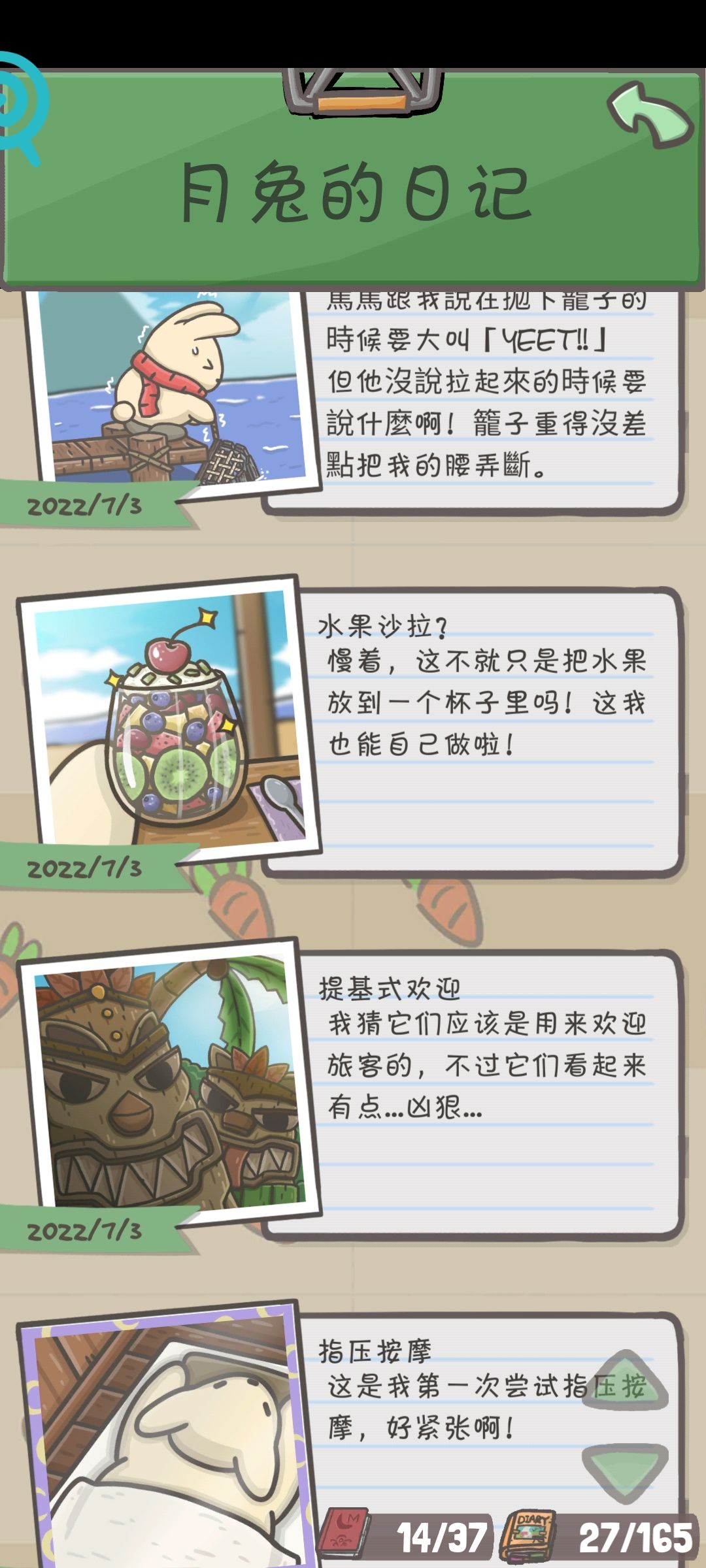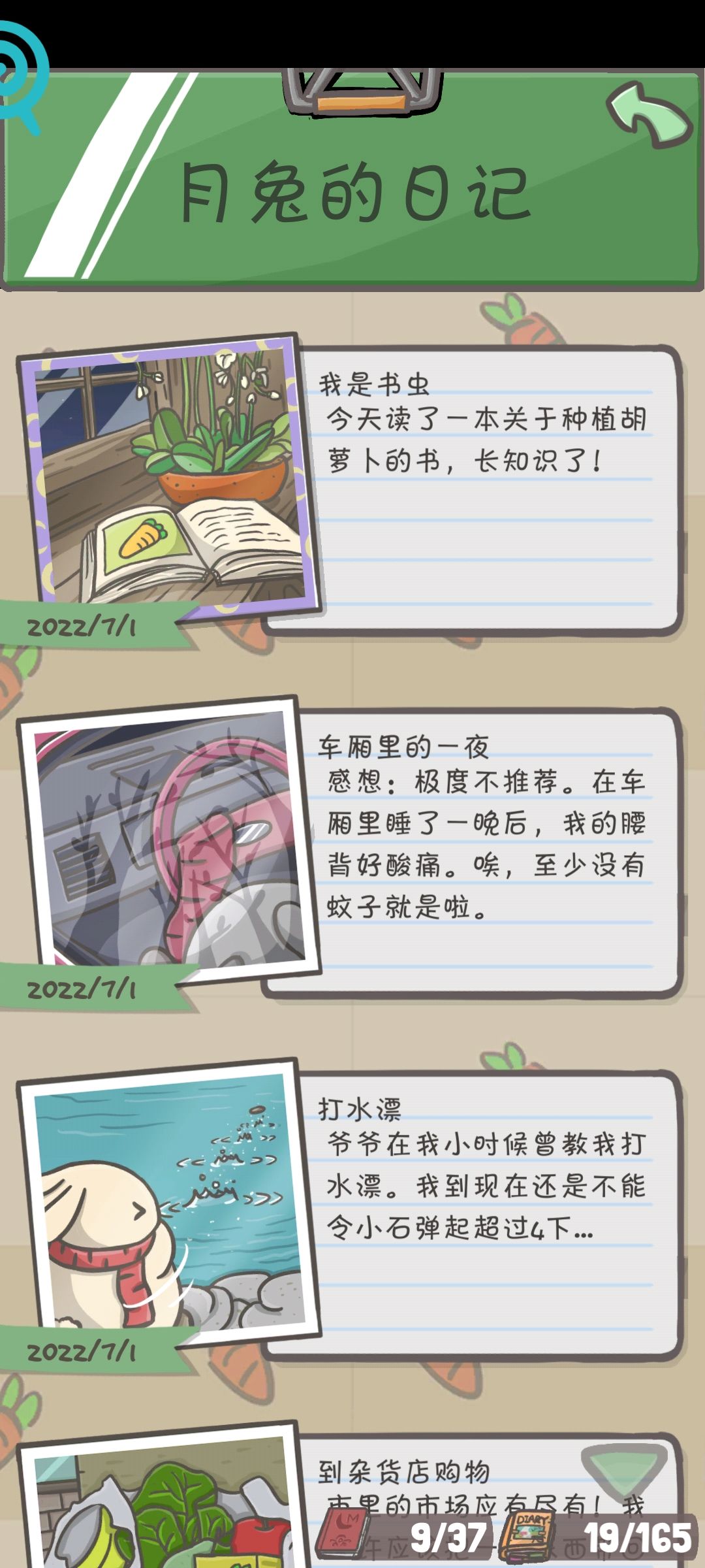 7.1今天带着空空如也的钱包去了森林,然后疯狂钓鱼。给穿山甲买了手电筒,又买了些杂七杂八的东西。杂货店一直没刷到能触发探险的设备,不过也不急,我的胡萝卜不够