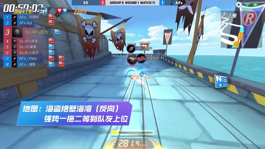第二场比赛目前公认实力最为强劲的FC登场!虽然AFs作为常规赛的S组强队实力也不可小觑,但两轮比赛下来,在组队竞速方面FC几乎呈碾压之势。值得一提的是,在第一轮的道具赛中AFs一度以2:0的比分接近胜利,但FC展现出了强大的韧性,让二追三绝地逆转!最终FC以2:0的总比分拿下胜利,同时成为第一支进入成都线下决赛圈的队伍!同时AFs输掉比赛后将进入7.1的败者组复活赛,因此他们仍有着复仇FC的可能性,也希望大家能在后续的比赛中为他们加油打气!