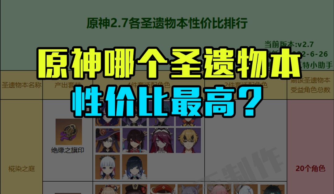为此,Z哥给大家总结了一份2.7版本的各圣遗物本的性价比排行,给大家参考一下到底刷取哪些圣遗物本的性价比是最高的。