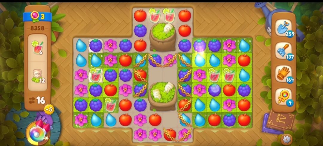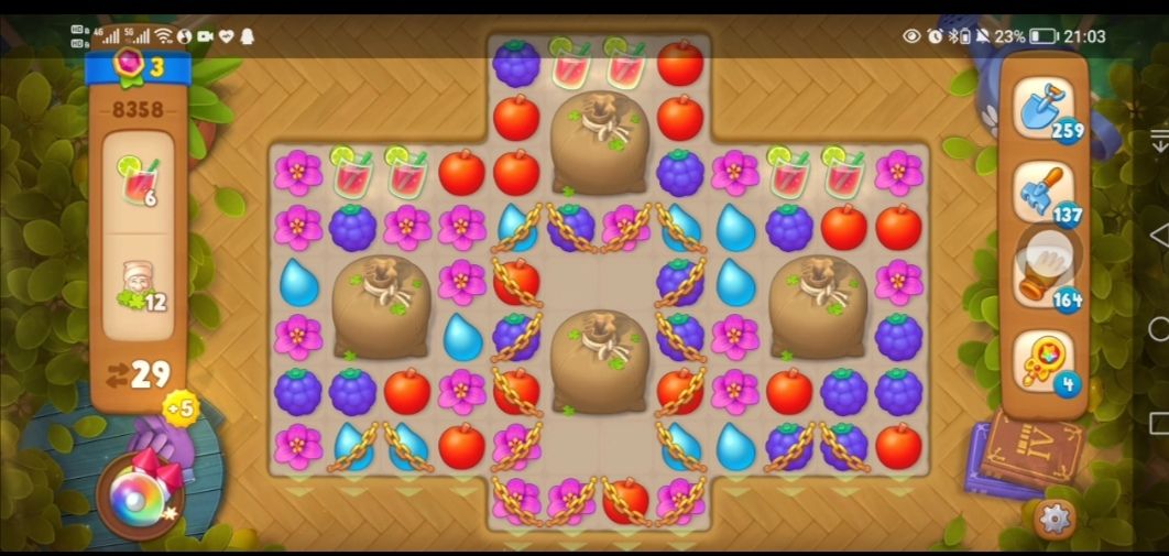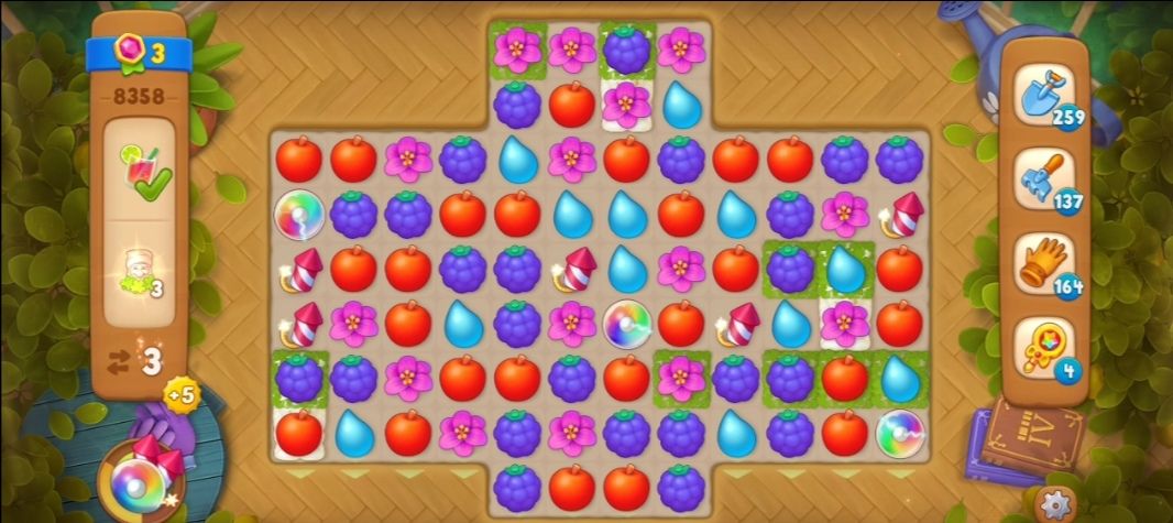③收集小矮人需要在小矮人袋子旁边匹配元素交换,元素交换三次可以完全打开袋子,出现草地和小矮人。