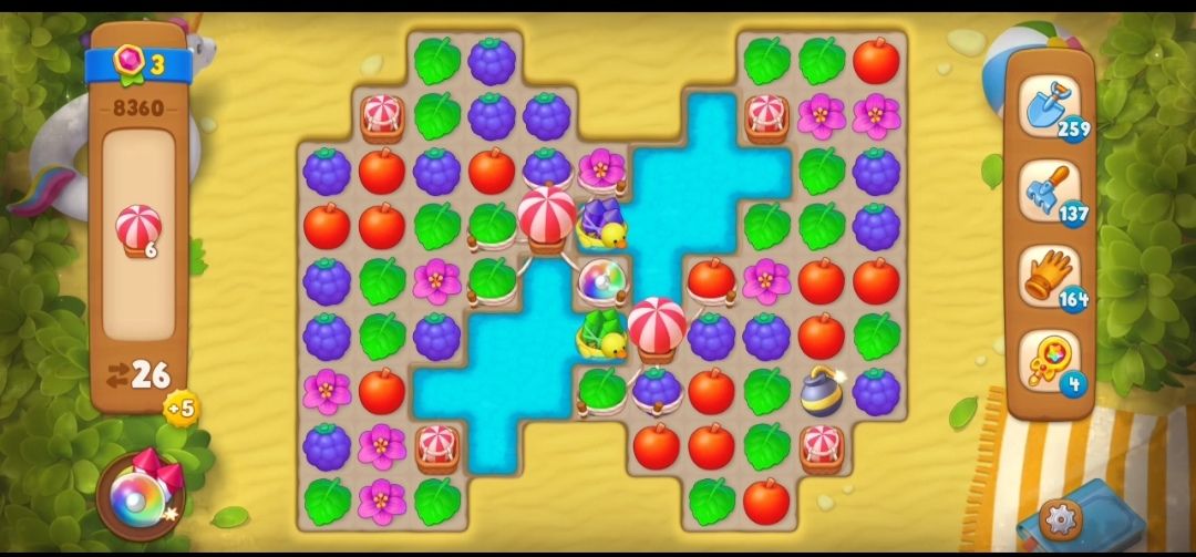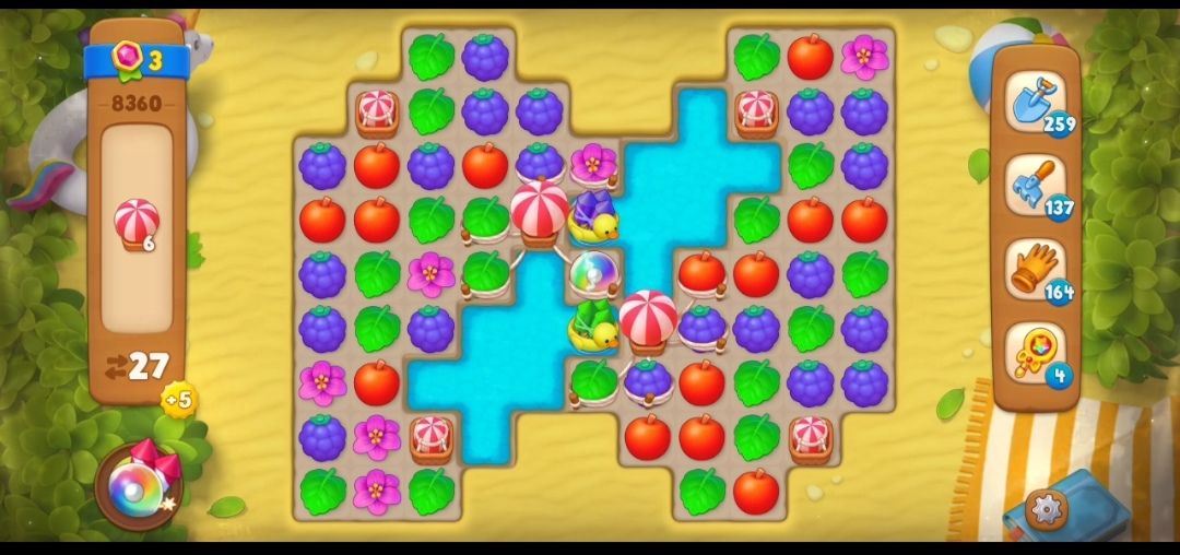 ③先清除线绑定在元素上的热气球,与热气球篮里被绳子绑住的元素进行交换,可以释放出热气球,每个热气球绑定5个元素。