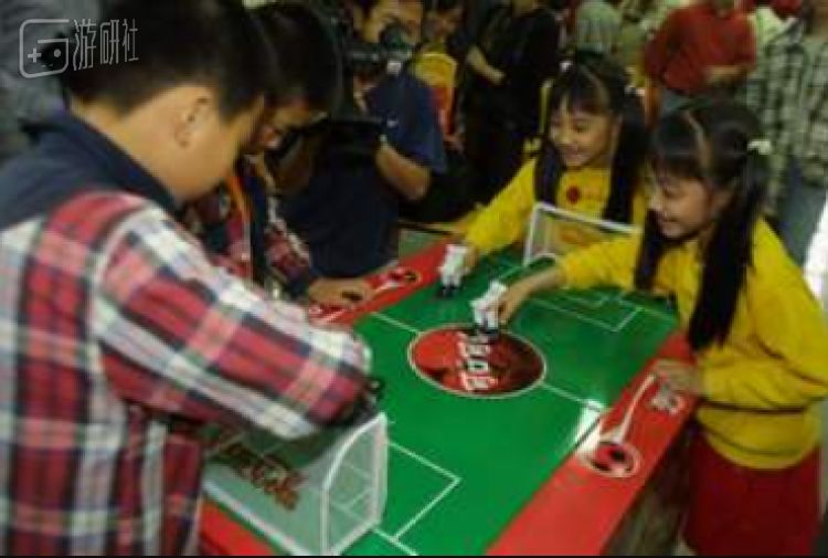 但在02年的韩日世界杯期间,为了响应国内全民足球的热潮,可口可乐还将眼光放到了线下。除了筹办民间的足球赛事外,对于那些年纪较小、缺乏足够的场地空间,或者对足球运动一知半解的业余人士,可口可乐则推出了更轻量级的“弹指足球”。