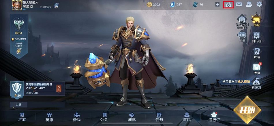 (1)点击游戏主界面右上角【录像】图标。