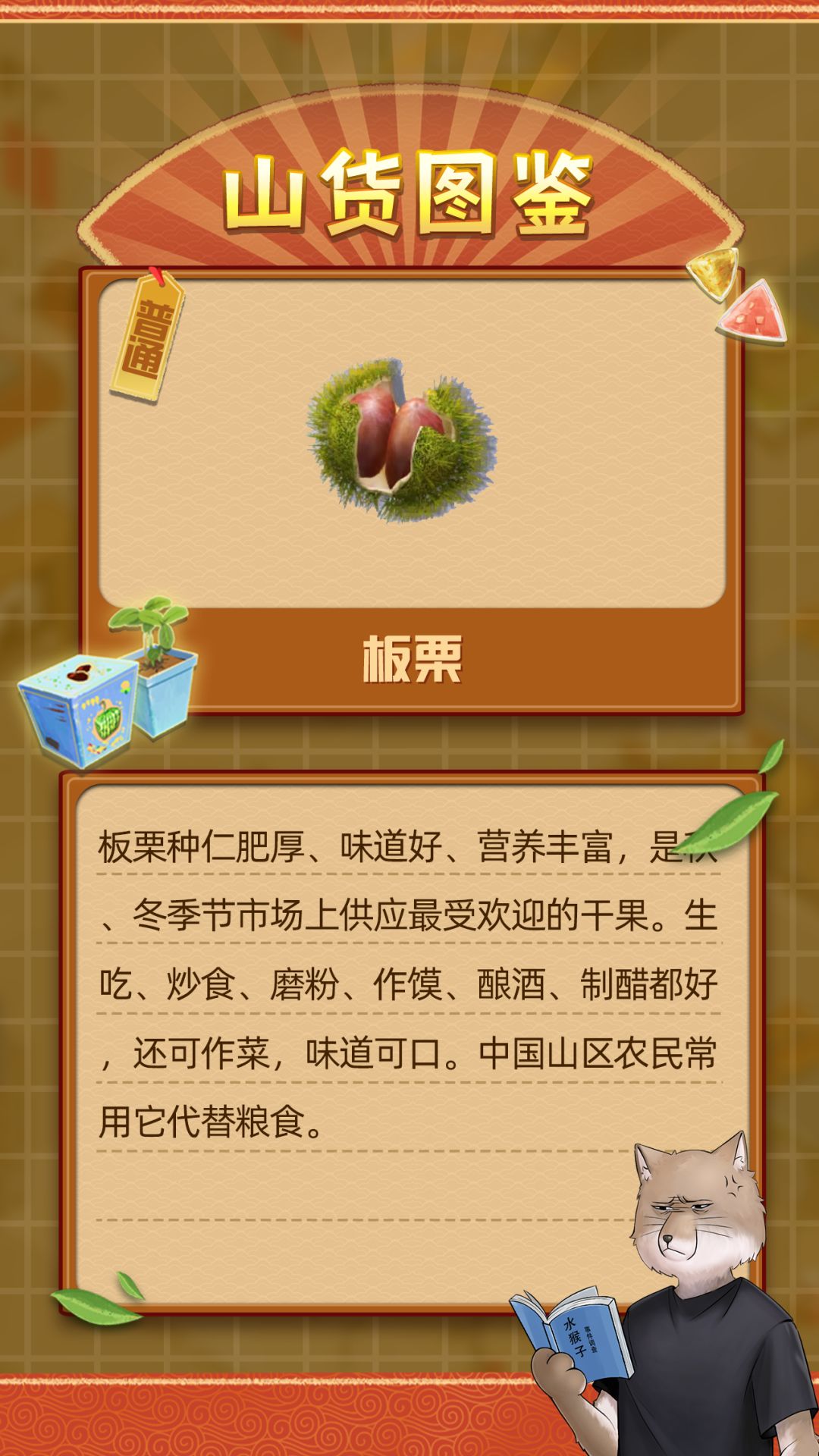 详细描述:板栗,别名:魁栗,壳斗科栗属双子叶植物,素有“干果之王”的美誉,种仁肥厚、味道好、营养丰富,是秋、冬季节市场上供应最受欢迎的干果。生吃、炒食、磨粉、作馍、酿酒、制醋都好,还可作菜,味道可口,中国山区农民常用它代替粮食。